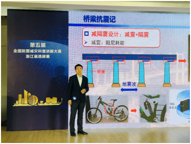 黄殿武老师指导的董才权同学、董洪晶老师和刘德军老师分别以自主命题《抗震神变---抗震变形缝》、《建筑减隔震小知识》和《桥梁抗震记》进行了精彩的科普讲解。凭借扎实的理论功底和良好的精神风貌,董洪晶老师和刘德军老师分别获得了大赛三等奖,董才权同学获得了优胜奖。