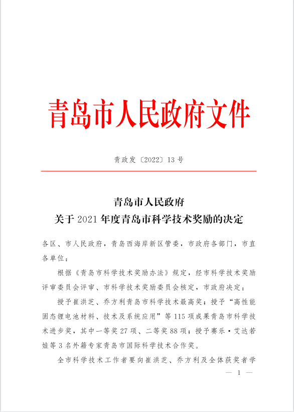 近日,青岛市人民政府发布了《关于青岛市科学技术奖励的决定》,公布了2021年度青岛市科学技术奖励名单。我校H图书馆