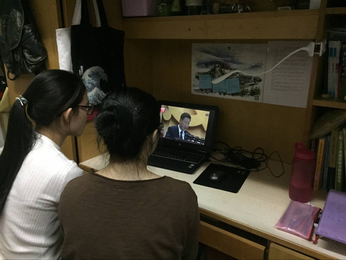 大学生在宿舍集中收看
