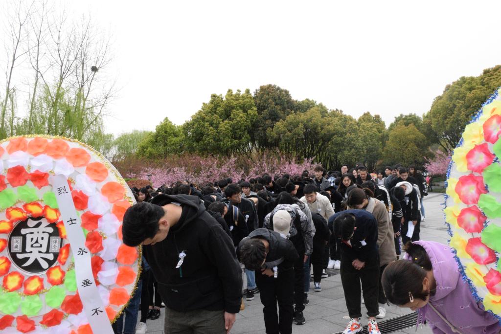 青松翠柏守英烈,春风黄花寄哀思。3月31日上午,嘉兴学院H图书馆