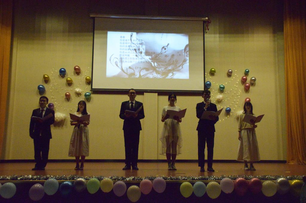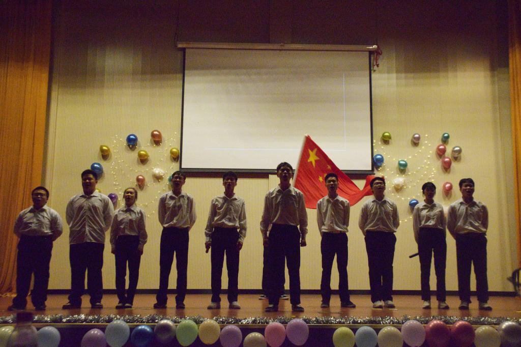 开幕式第一项:全体肃立,奏唱国歌。现场师生们齐唱国歌,满目憧憬。