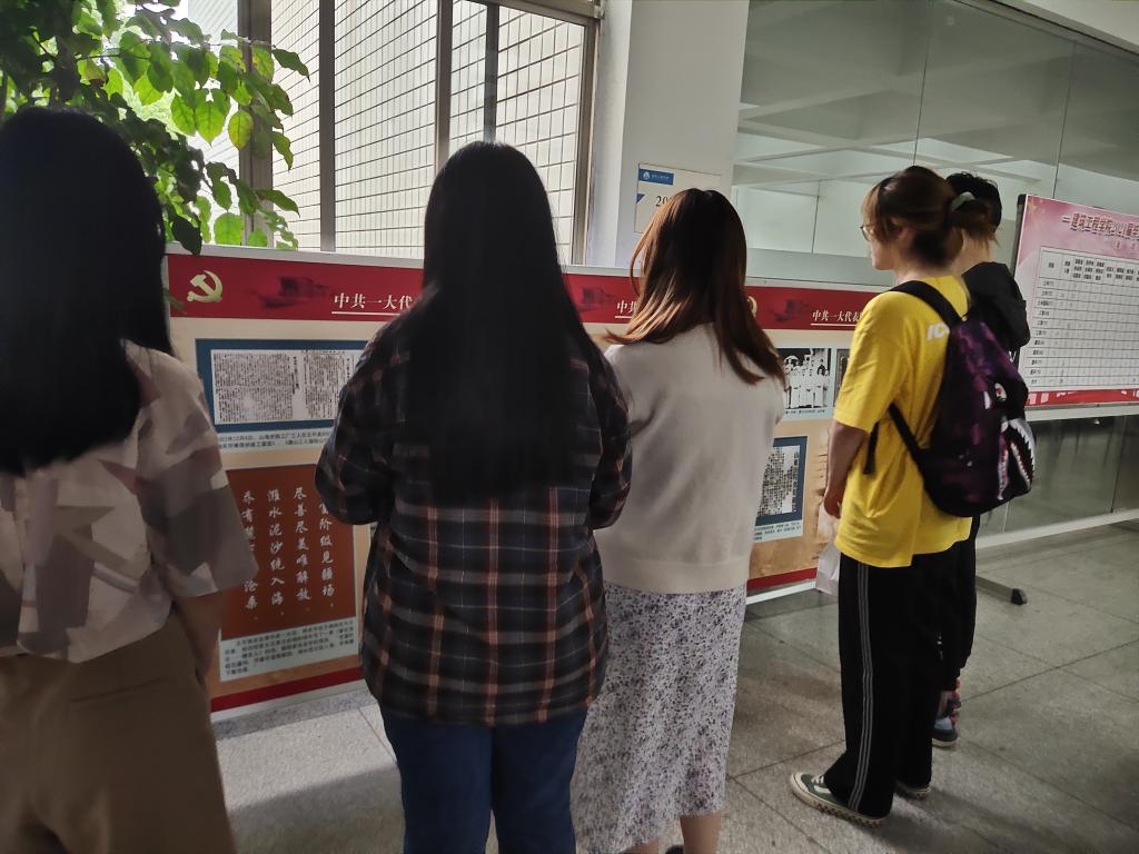 近日,H图书馆 团委联合嘉兴市新四军历史研究会举办了以“学党史,强信念,跟党走”为主题的“走进中共一大代表”图片展,吸引了众多的同学前来参观。 本次展览共展出展板34块,通过近百幅珍贵照片和精彩的文字说明,重现了中共一大代表们的人生轨迹,讲述中国共产党的光辉历史。同学们都对展览活动表现出极大热情,怀着崇敬的心情观看展板内容,相互交流自己的想法。 通过此次学习参观,同学们对作为中国革命精神之源的红船精神加深了理解的同时,也被伟人们坚定理想、百折不挠的事迹所激励。
