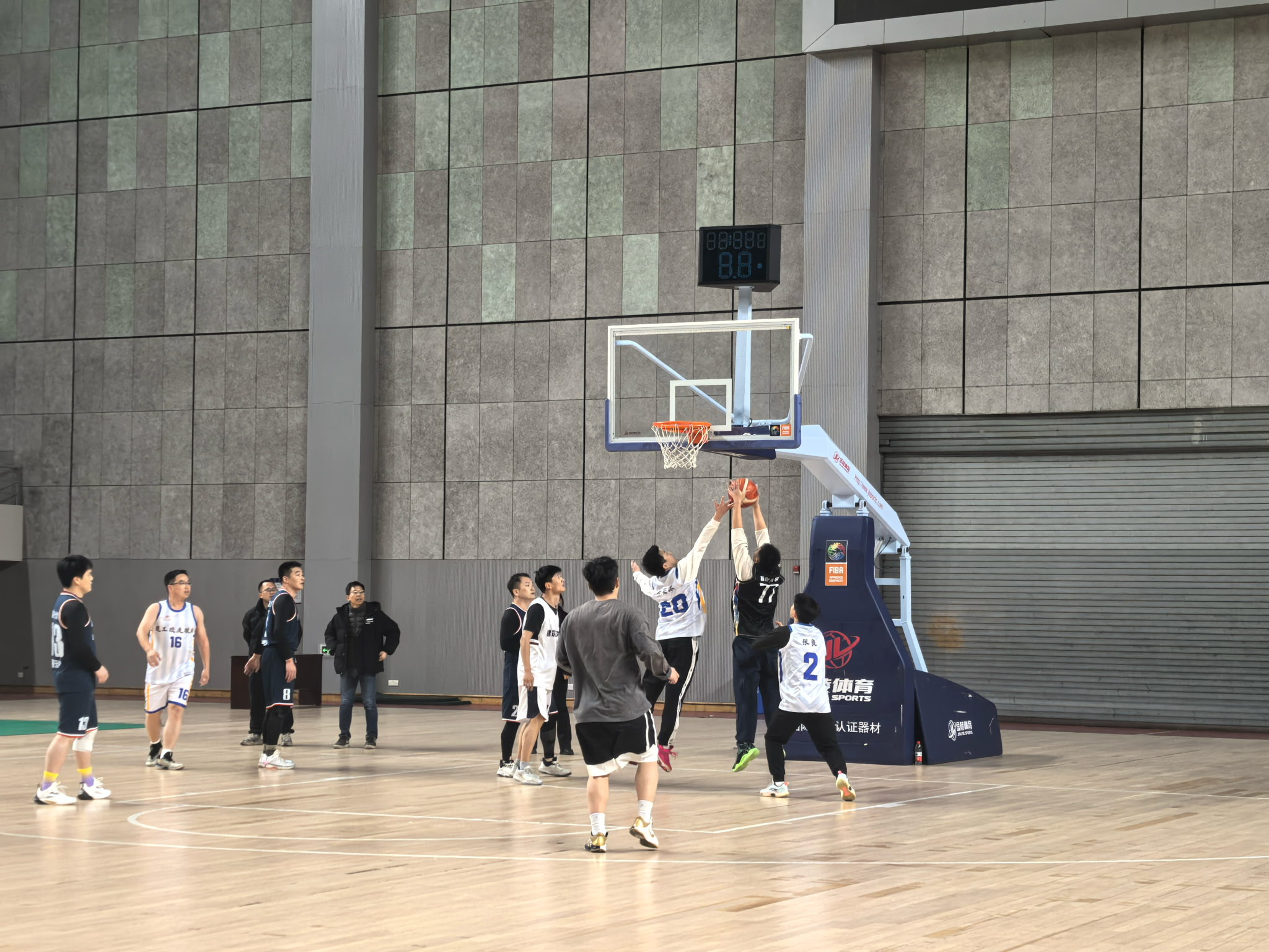 场上攻势如潮,场下呐喊激昂。校友联队中锋屡次篮下强打得分,展现扎实功底;教工队则凭借精准三分与灵活传切不断得分。双方你追我赶,比分交替上升,每一次防守、每一次快攻都凝聚着团队的力量,也将现场气氛不断推向高潮。