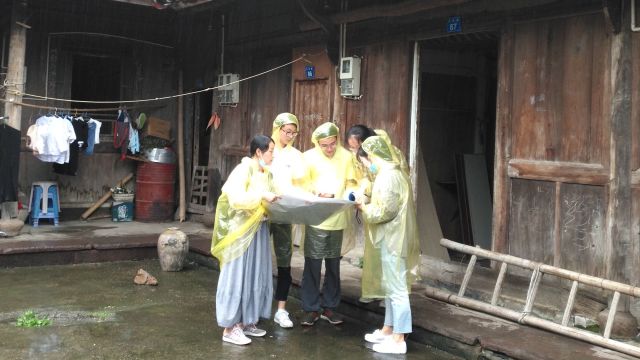 师生团队受到了三门县亭旁镇人民政府的热情接待,调研、测绘工作开展顺利,无论阴雨或烈日,大家都坚守着自己的工作岗位,测绘小组分工明确、不畏辛苦、克服困难,对亭旁镇包家村及邻近村落进行了古村落保护更新调研与古建测绘工作,6月5日晚结束部分外业测量工作,返校开展内业工作,整理并绘制相关图纸。