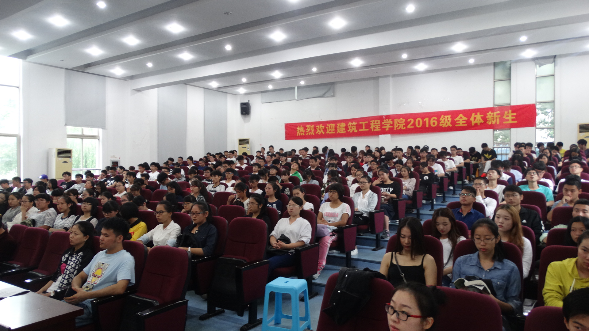 2016级全体新生参加了开学典礼。典礼由建工学院王辉副书记主持。