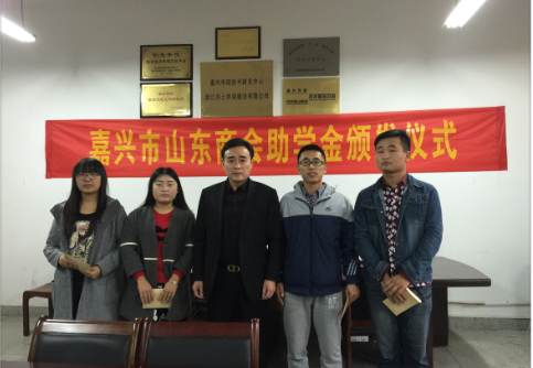 319会议室举行。嘉兴市山东商会会长张庆允先生、书记杜全海先生、秘书长袁汝伟先生、副会长刘百山先生一行莅临现场并为受到资助的四位山东籍学生颁发了助学金,建工学院副院长孙德发、党委副书记王辉出席了活动,孙德发副院长代表学院将捐赠证书颁发给张会长并表达了学校的感谢,袁汝伟先生代表商会做了言简意赅的寄语,希望同学认真学习、踏实做人,将来回报社会,受资助的学生代表张秀坤同学代表受资助学生做了感人至深的发言。嘉兴市山东商会是一个具有强烈社会责任感的民间组织,一直热心公益慈善事业,与建工学院已经建立了稳定的资助联系,目前已连续资助了四年,受助学生近15人。