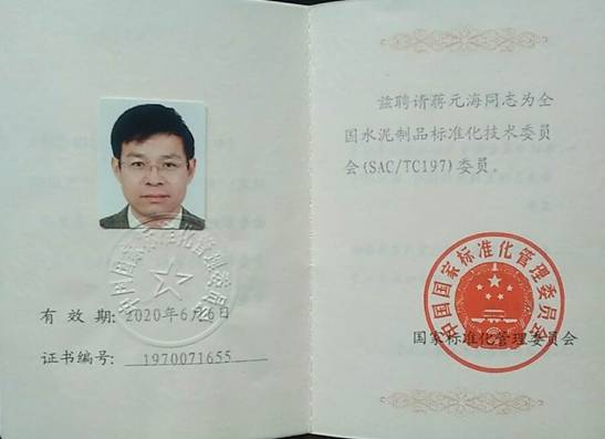 院长兼党委书记蒋元海教授收到国家标准化管理委员会颁发的“全国混凝土标准化技术委员会(SAC/TC458)”委员证书(证书编号4580070748)和“全国水泥制品标准化技术委员会(SAC/TC197)”委员证书(证书编号1970071655)。