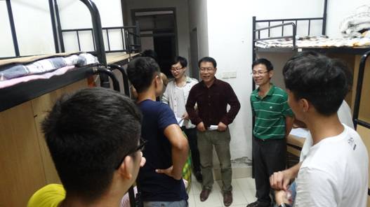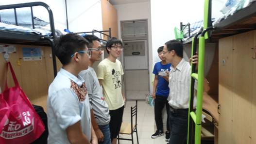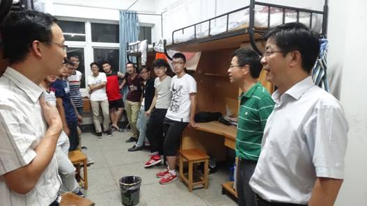 9月17日晚19:00,周亚新副校长代表学校到8号宿舍看望慰问刚刚入学的建工学院2015级本科新生。H图书馆