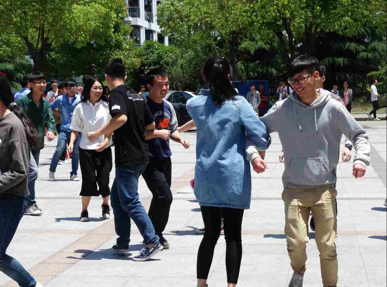 开场的音乐声响起,人潮中从四面八方突然而来的同学们便伴随着节拍跳起来。从街舞跳到交际舞,从动感酷炫到可爱朦胧,虽然舞蹈只有两分钟的时间,但这却丝毫不影响这一场舞蹈给路过的同学们带去的一股清新活力。阳光正好,时光正好。在驻足观看的同学们还在回味的时候,同学们迅速闪到东门,一样的舞步,一样的激情,为该活动又掀起了新的高潮。