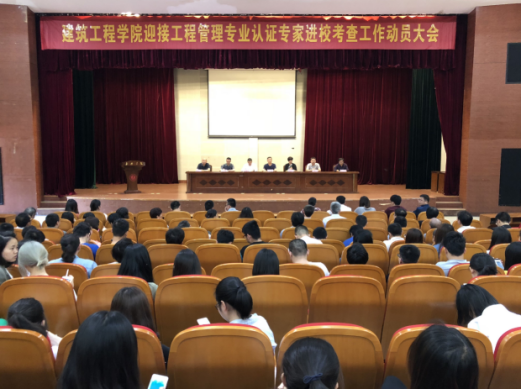 孙德发副院长宣读住建部高等教育工程管理专业评估委员会发来的《关于嘉兴学院工程管理专业入校考查安排的通知》;工管系赵全振主任做专业认证宣讲;马嵘院长做动员讲话。