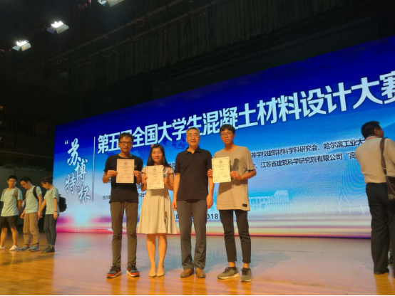 此次“苏博特”第五届全国大学生混凝土材料设计大赛由教育部无机非金属材料专业教学指导委员会、中国混凝土与水泥制品协会、全国高等学校建筑材料学科研究会、哈尔滨工业大学联合主办,哈尔滨工业大学交通科学与工程学院、CCPA教育与人力资源委员会、全国高等学校建筑材料学科研究会、江苏省建筑科学研究院有限公司“高性能土木工程材料国家重点实验室”承办。本次大赛主题是:C35大流态混凝土,采用机制砂,以有利于混凝土耐久性为原则,并考虑工程应用环境和经济性,本次比赛的规模和影响大大超过以往 4届全国大学生混凝土材料设计大赛。