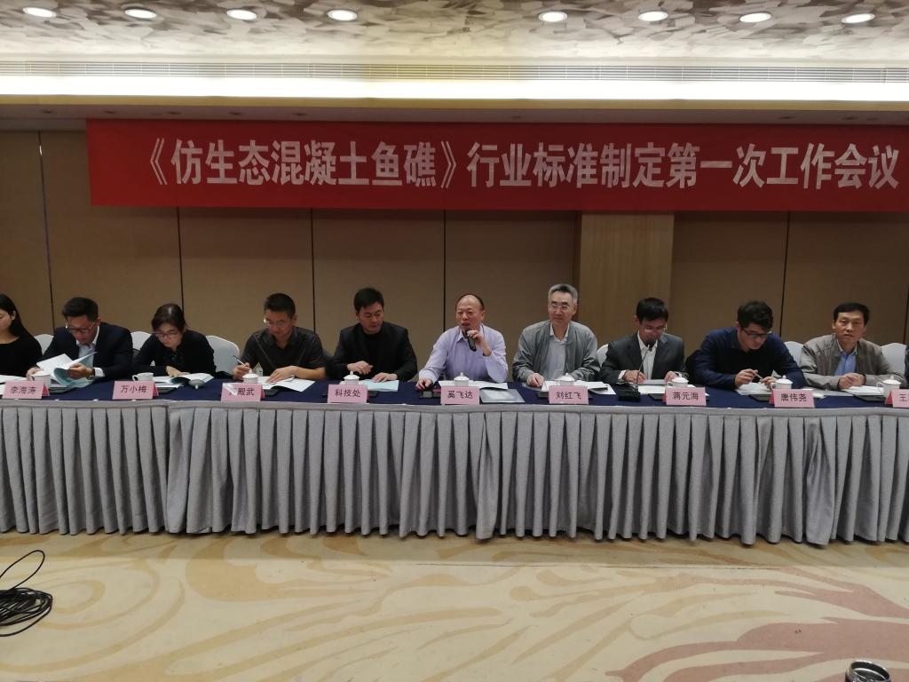 蒋元海教授主持,项目负责人刘红飞教授作了标准项目申报、标准制定前期工作及标准制定计划、标准框架结构、标准参与单位的工作分工、标准调研内容等汇报。随后,会议代表对《仿生态混凝土鱼礁》行业标准制定工作进行了认真、热烈的讨论和交流,对本项标准的制定工作提出了许多宝贵的建议。会上还成立了标准编制工作组。