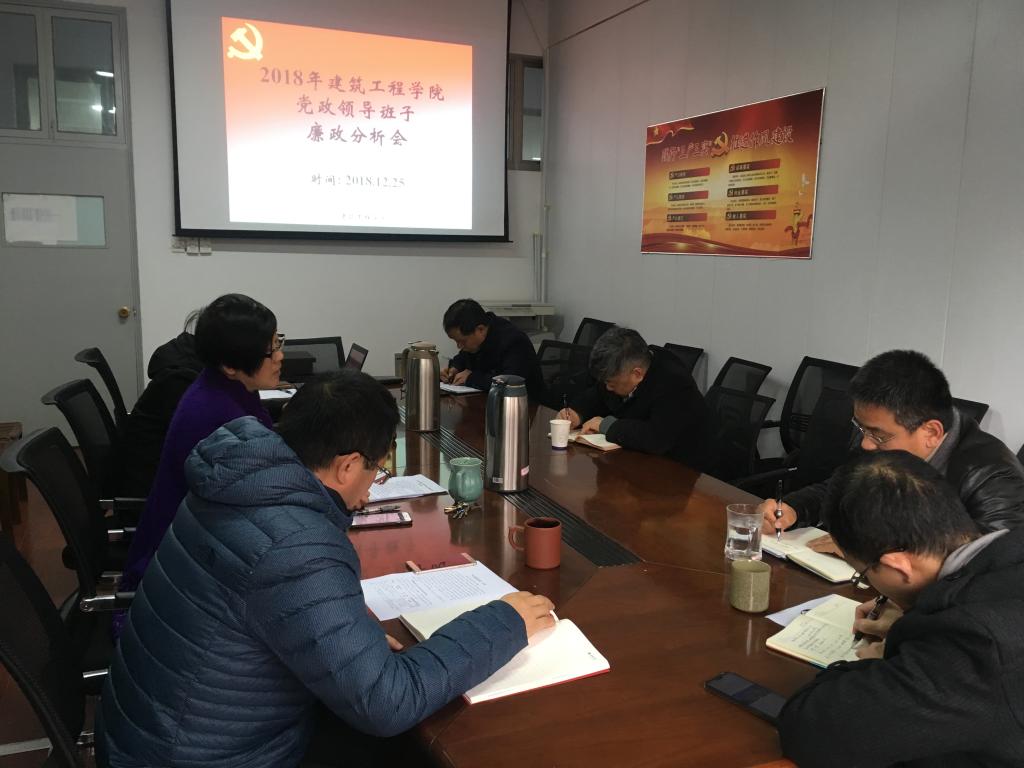 2018年12月25日下午,建工学院在204会议室召开党风廉政建设情况分析会。校党委副书记严从荃、分院党政班子成员及党委委员赵全振、贺成龙出席分析会。会议由分院党委书记费锦红主持。