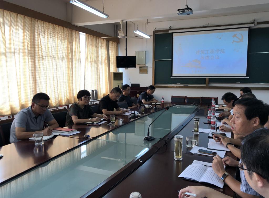 在建工楼319会议室召开班子务虚会,谋划布局分院的发展思路。学院领导班子成员、各系、中心主任及三办主任共同参会。会议由党委书记费锦红主持。