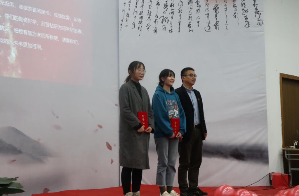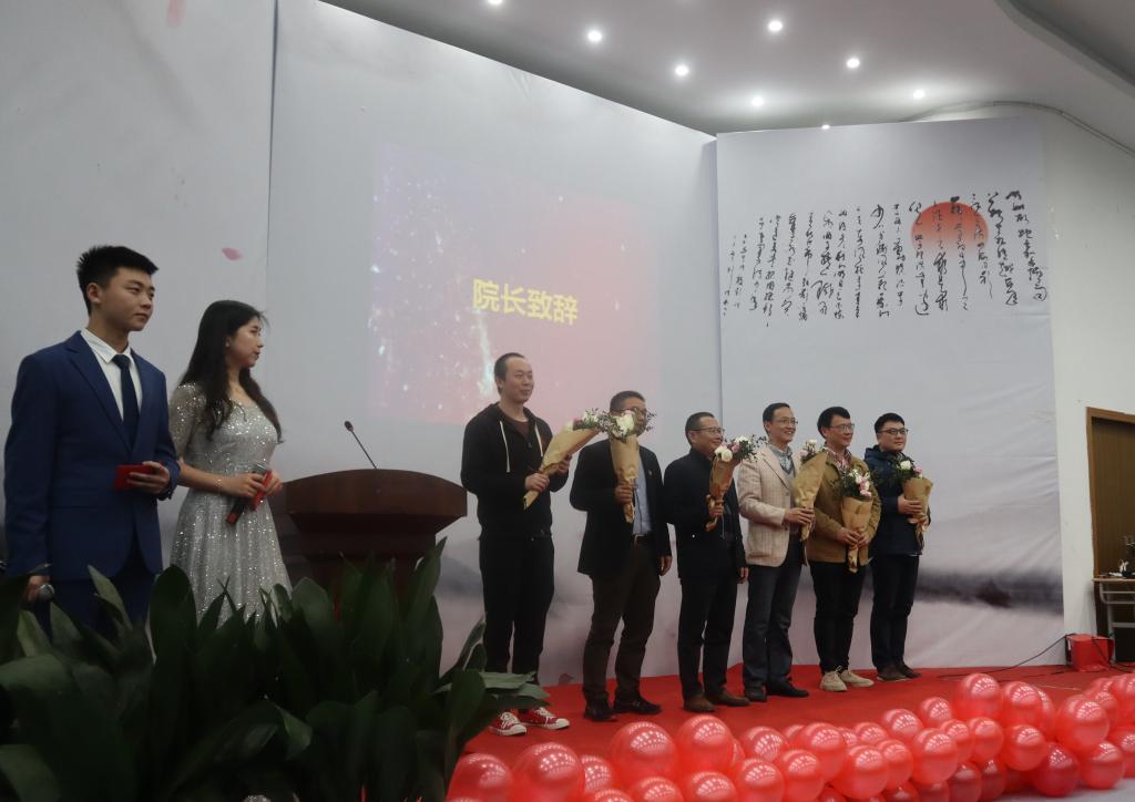 最后,黄殿武副院长上台致辞,黄院长希望大家能认真总结过去一年里的学习经验与方法,在新的年度里取得更优秀的成绩。致辞结束后,为了感谢老师对我们的辛勤教导、精心培育,领奖同学为各领导老师和陆荣林先生送上了蕴含感激的鲜花。