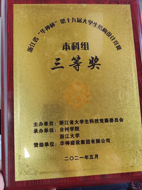 近日,浙江省“华神杯”第十九届大学生结构设计竞赛在台州学院举行,建工学院派出的代表队获得两项三等奖。本次大赛由浙江大学和台州学院承办,大赛共吸引全省48所高校,100支参赛队伍,近400名师生参与。