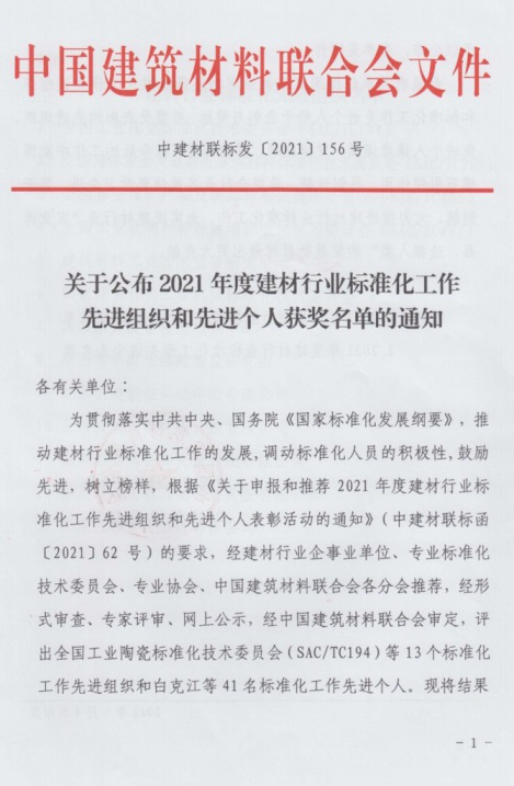 日前,中国建筑材料联合会公布了2021年度建材行业标准化先进组织和先进个人获奖名单,我校H图书馆