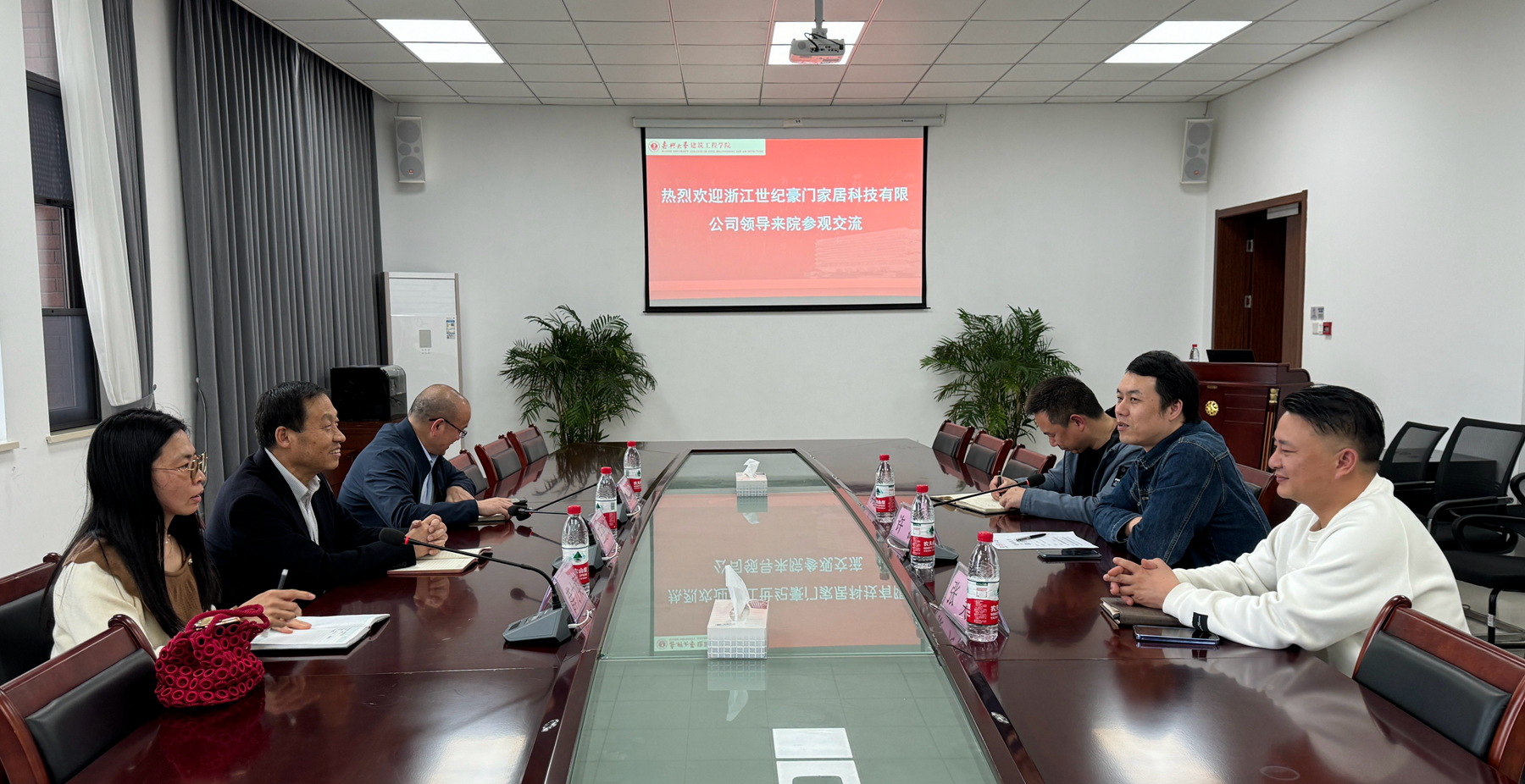 许源总经理介绍了浙江世纪豪门家居科技有限公司的发展情况及此行参观交流的目的,期待在智能装饰、新型装修材料、创新平台等方面与学院的进行紧密合作,提升企业技术含量。