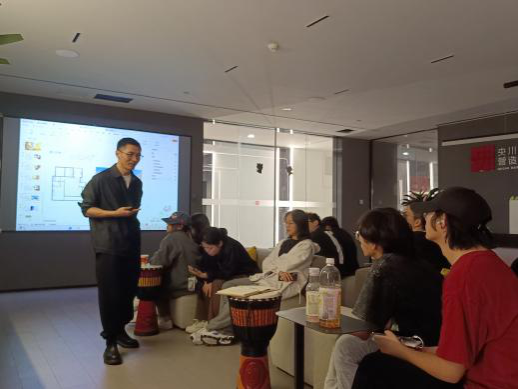 课程中,潘小川深入浅出地为同学们剖析了设计过程中的关键环节和注意事项,为学生们呈现了一个全新、立体、生动的室内设计世界。他结合学生们的设计作品,提出了专业且有针对性的修改意见和建议。学生们纷纷表示,通过将课堂走进企业的形式,拓宽了设计视野,提升了设计思维和能力。