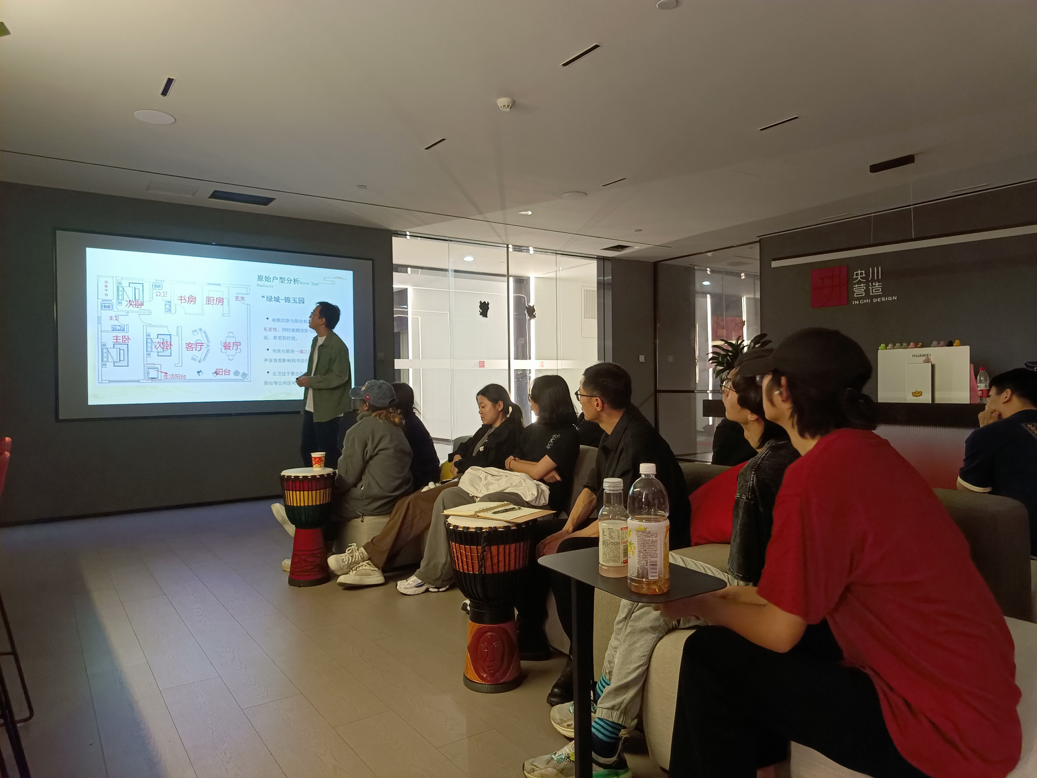 10月15日,在嘉兴市央川装饰工程设计有限公司设计工作室里,来自建筑222班的全体同学,在公司董事长兼企业导师潘小川的讲授下,上了一堂别开生面的室内设计课程与实践课。