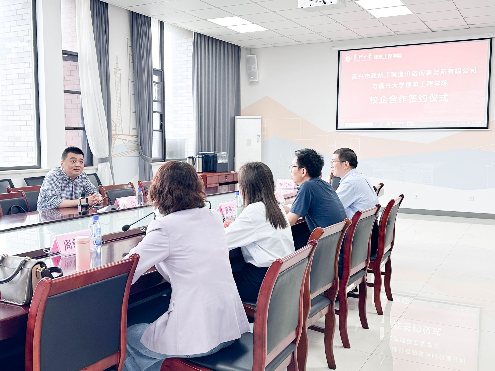 双方在签约后进行了亲切而深入的交流。沈劼校友首先表达了对母校的深厚感情,并介绍了建新公司在工程造价咨询领域的专业优势和近年来取得的成就。他表示,建新公司非常愿意为学院的实践教学提供支持和帮助,同时也希望能够在今后校园招聘中优先选拔优秀的毕业生加入公司团队。