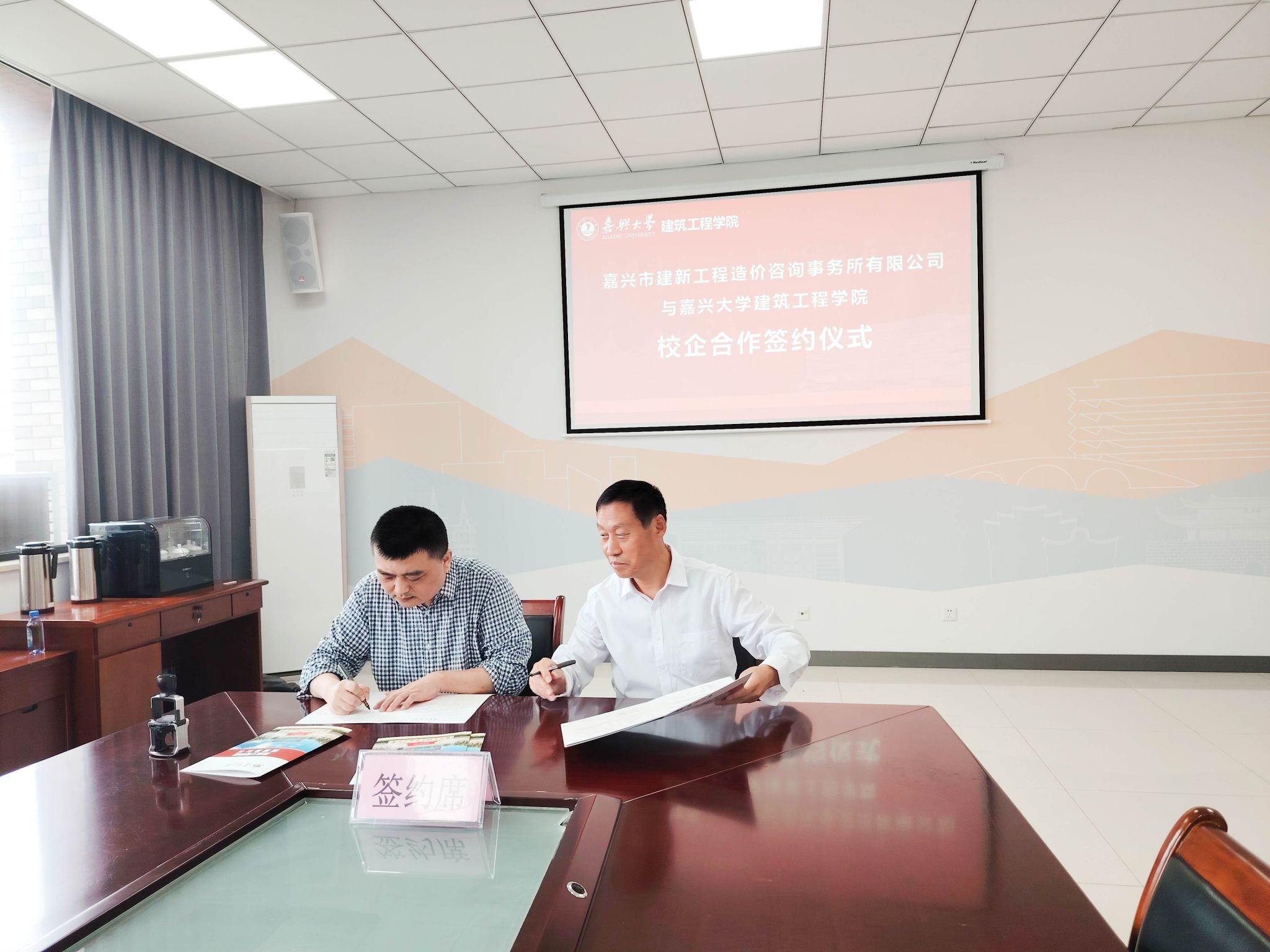 院长王恩茂教授与沈劼校友分别代表学院和公司,在校企合作协议书上郑重签字。这一协议的签署,标志着双方将在学生实习实践、毕业生就业等多个领域展开深入而广泛的合作。