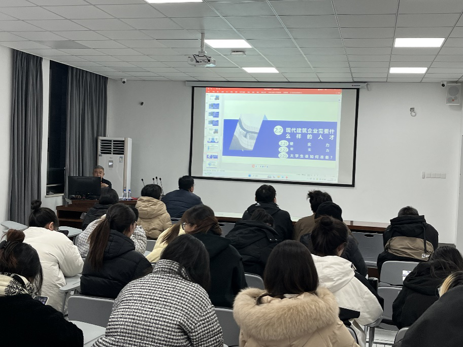 举办了“建工大讲堂”第13期学术交流活动。本次大讲堂特邀浙江兴远建设有限公司的副总经理——王炜高级工程师,做主题为“2024年建筑行业发展现状及新形势下建筑施工企业的发展之路”的学术报告。在学术报告开始前,王恩茂院长亲自为王炜高级工程师颁发了客座教授聘书。受聘仪式结束后,由工管系主任宋宇名主持会议,全院70余名师生到场共同聆听。