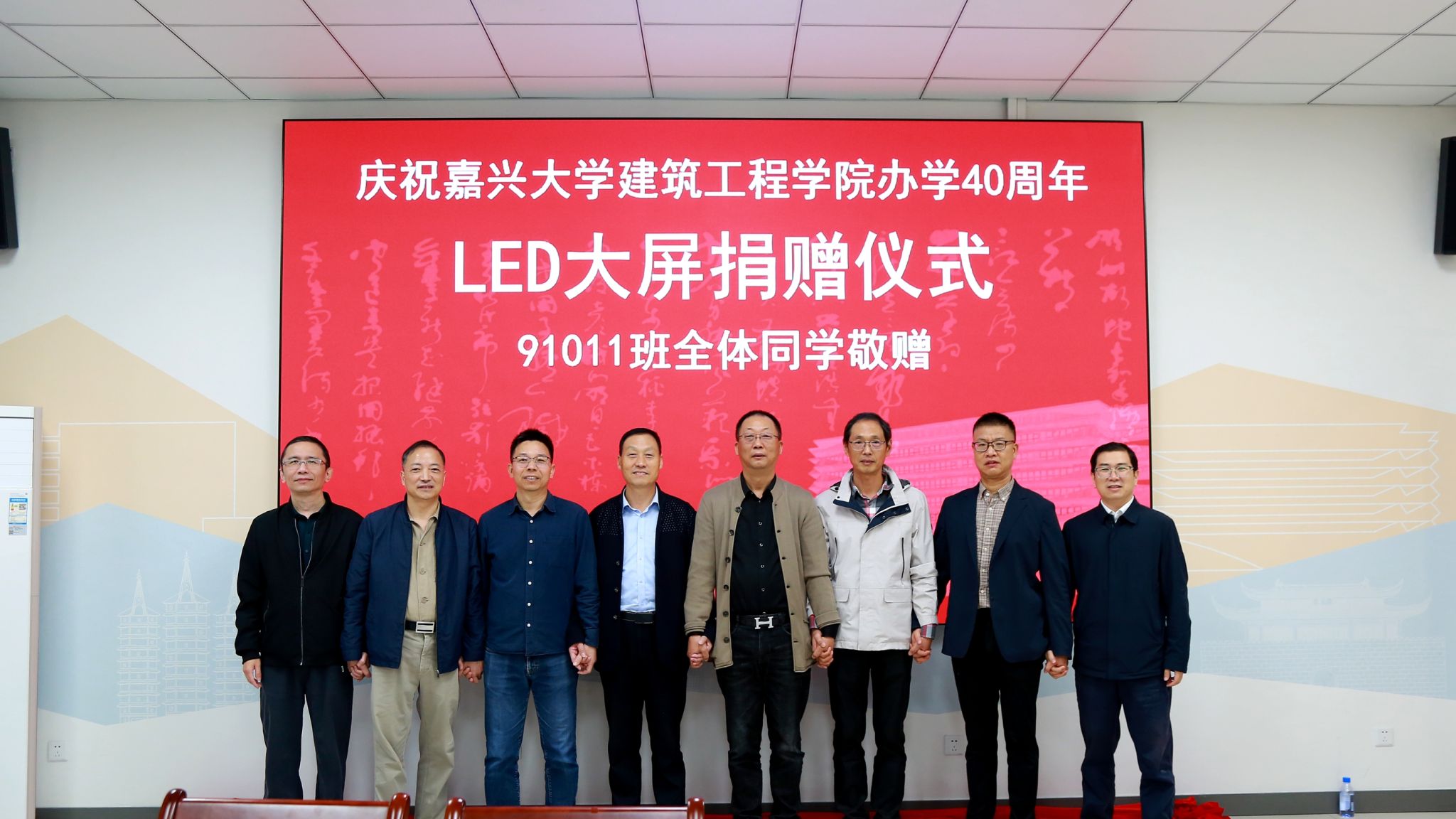 迎来办学四十周年这一重要时刻,工民建91011班全体同学自发组织筹资,向学院捐赠了一块LED大屏,为院庆献上厚礼。