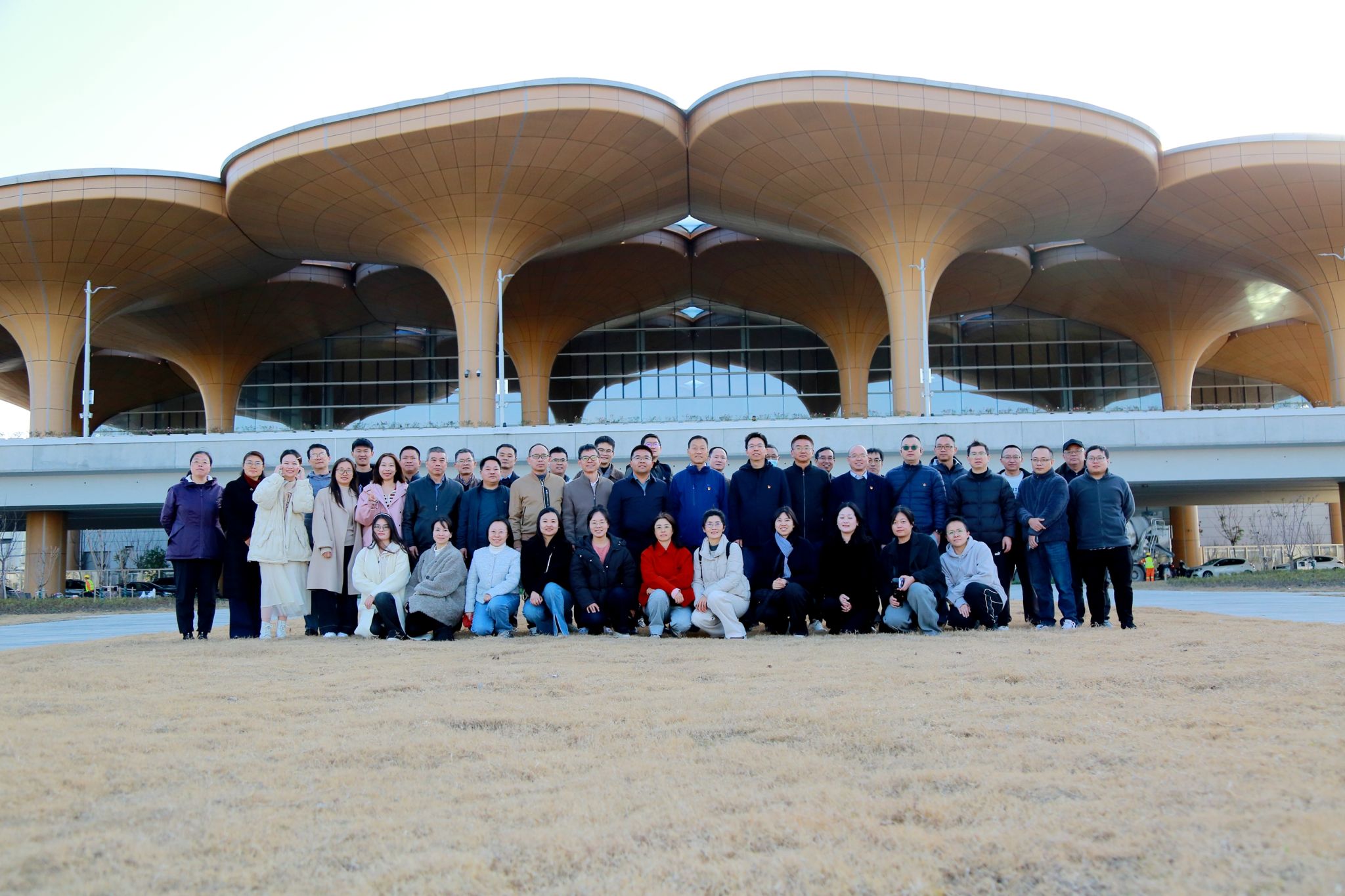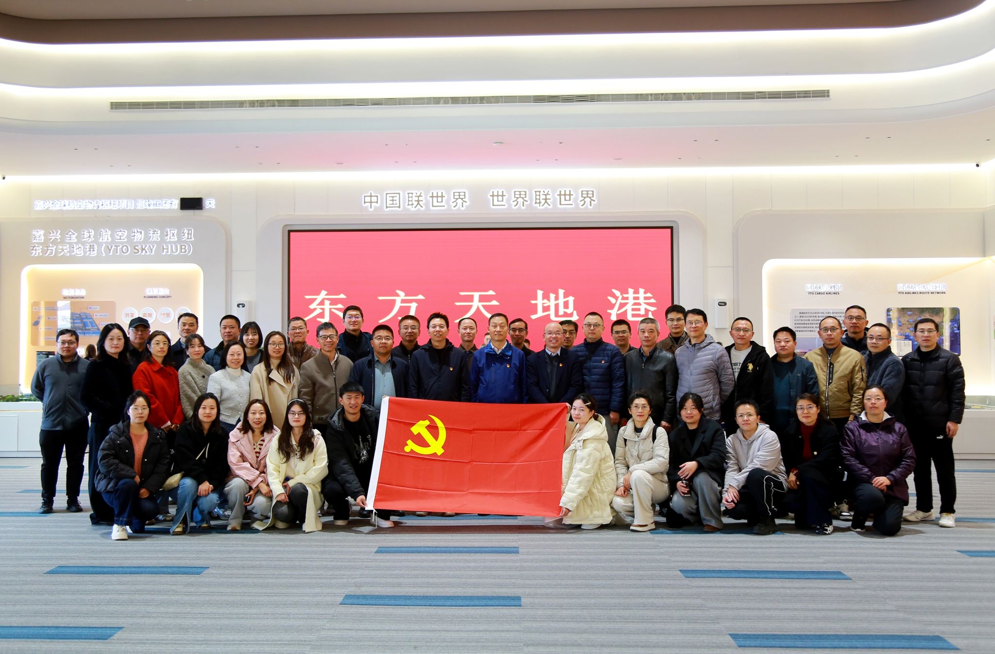 129日下午,H图书馆 党委组织党员师生代表,联合联合校管处与采购中心党支部,深入嘉兴南湖机场及圆通东方天地港项目现场开展实地研学。此次活动旨在通过沉浸式观摩,让党员们直观感受现代化大型基础设施建设的壮阔图景,汲取奋进力量