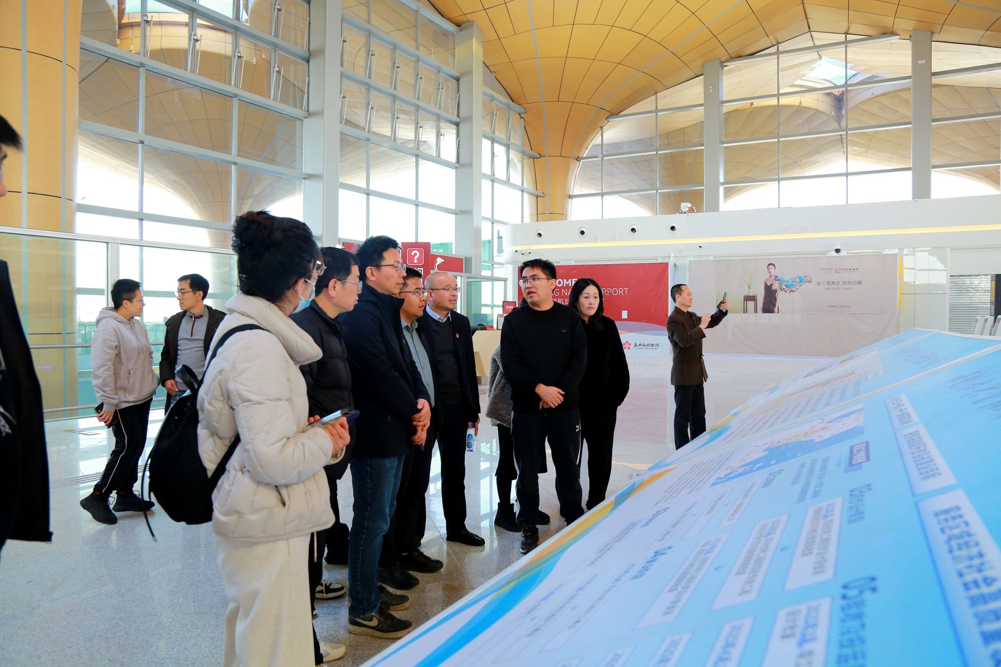 随后,大家来到了嘉兴南湖机场实地参观了航站楼主体楼建筑,深入参观了安检通道、候机大厅等场所和设施,对机场作为长三角一体化战略支点的区位优势有了更深刻的认识。从十五年前谋划到如今即将通航,无数“机场人”披星戴月、风雨兼程,以智慧和汗水攻克一个又一个技术难题。这种精神如同璀璨星辰,照亮了嘉兴“航空梦”的道路。通航后的嘉兴南湖机场将成为长三角地区首座、全国第二座专业航空货运枢纽,以独特的区位优势、坚实的产业基础、协同发展的格局和开放创新的姿态,为嘉兴谱写高质量发展新篇章增添强劲的“航空引擎”。通过参观,使大家对嘉兴南湖机场建设历程肃然起敬。