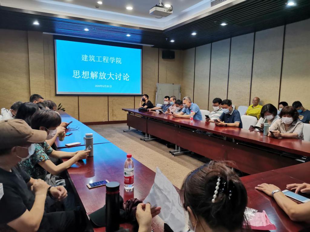 2020年6月20日下午,建工学院思想解放大讨论座谈会在环境优美的梅花洲酒店会议室举行,学院党政领导班子成员、各支部教师党员、教师代表参加会议。