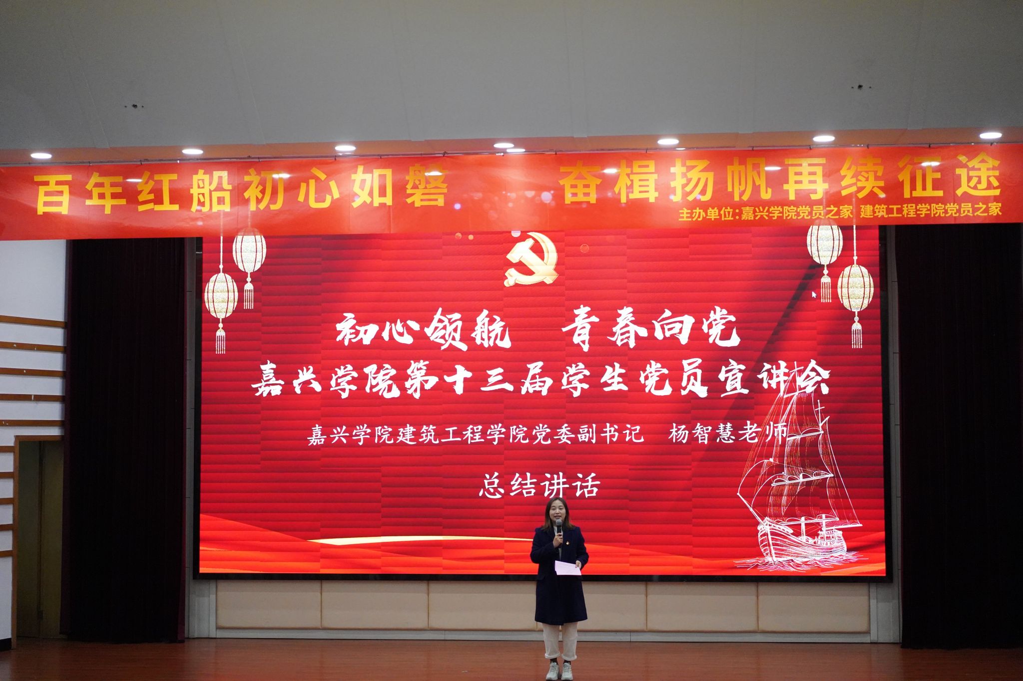 学生党员之家承办的“初心领航 青春向党——嘉兴学院第十三届学生党员宣讲会”在梁林校区TCL报告厅隆重举行。H图书馆