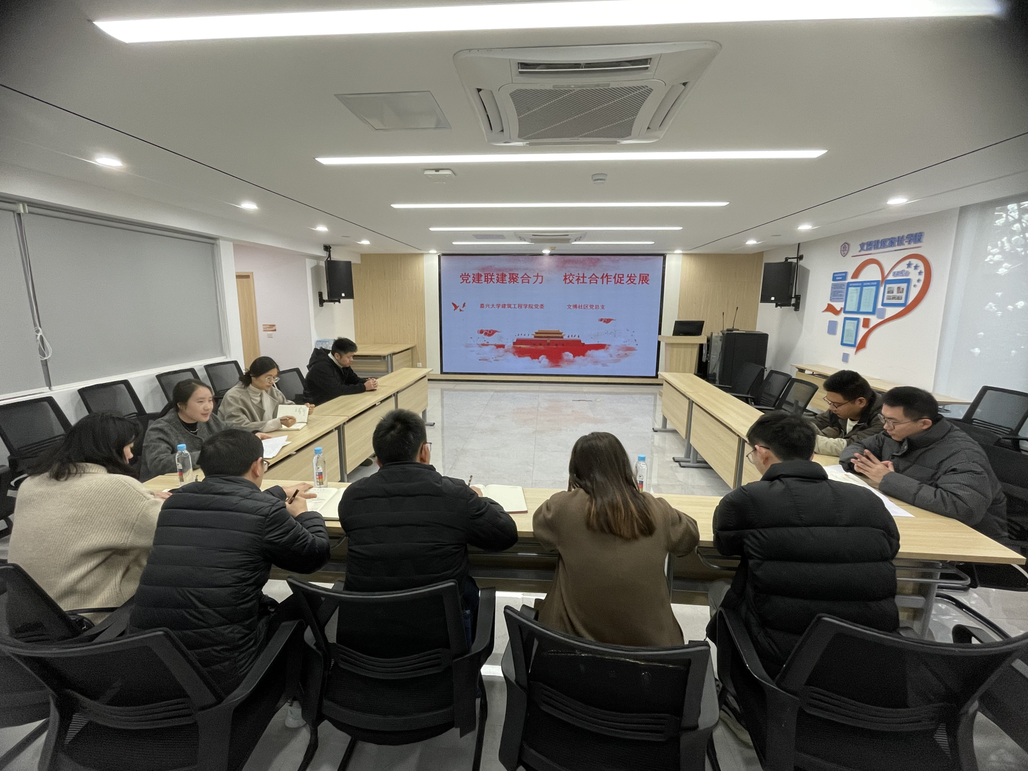 的基本情况、共建资源、共建需求等进行介绍,他表示学院将积极参与社区党建共建、文体活动、社区基层治理,为社区服务的同时,为学生发展成长提供实践锻炼机会。此次调研交流为今后开展“互惠互利、共同提高、合作共赢”为目的党建联建活动打下基础,对深化理论共学、资源共享、活动共建等方面进行了深入讨论,达成合作共识。