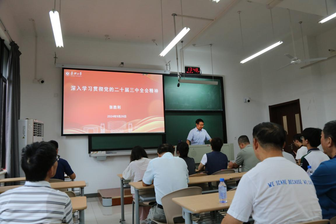 马克思主义学院张胜利、李云波两位老师带领学院全体师生党员和党建共同体成员单位党员深度学习党的二十届三中全会精神。