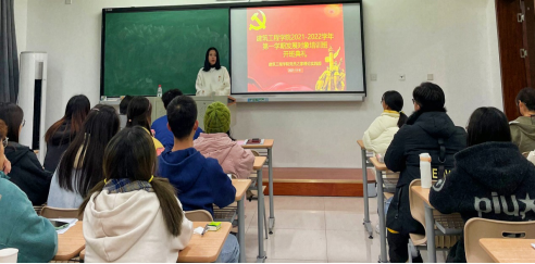 2021-2022学年第一学期发展对象培训班开班典礼在厚德楼260教室顺利举行。发展对象培训班班主任乐佳清老师,党员之家主任吴锦跃同学,理论实践部主任李珂珂、麻龙杰同学,考核发展部主任周云海、汤佳琪同学以及H图书馆