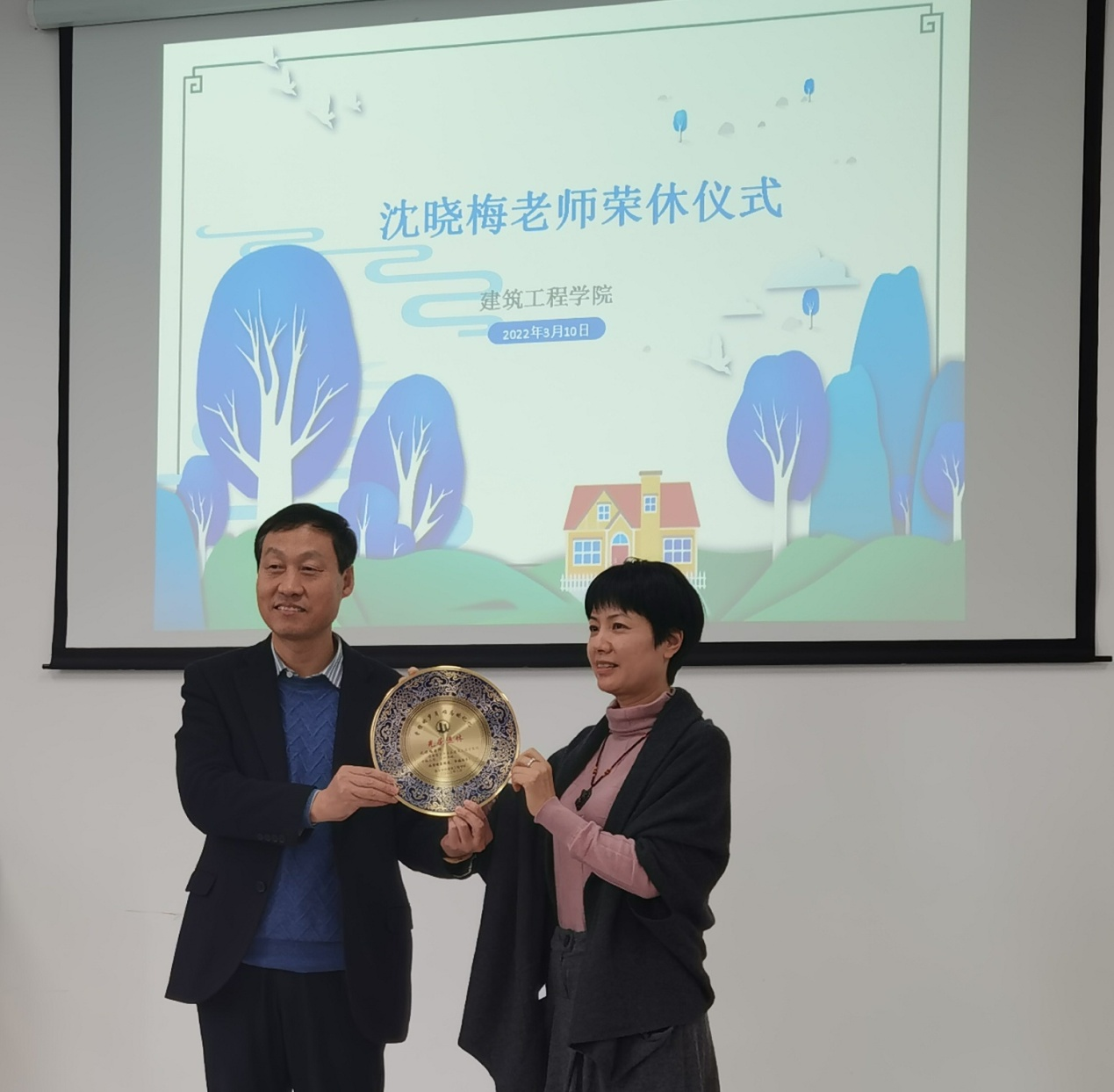 在兴德楼512会议室举行沈晓梅老师荣休仪式。沈老师自1995年来校工作后,积极转换角色,从一位政府工作人员成功转型为一名深受学生同事欢迎的高校老师。她在教学上钻研奋进,师生情感深厚,多年兢兢业业地工作,积累了丰富的经验,她主动承担对新教师的传帮带工作,在担任学院原力学部主任期间,团结全系部老师,为全系部营造了良好的工作和学习环境。