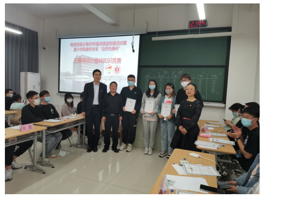 2022年5月9日晚,南湖资规分局8090宣讲团进校园活动暨嘉兴学院建筑学系“自然先锋杯”无障碍设计趣味知识竞赛(以下简称竞赛)如约而至。本次竞赛由嘉兴学院H图书馆