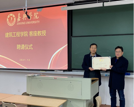 院长王恩茂教授为卢甬总经理颁发荣誉证书,学院土木2021级全体学生计78人参与报告会,建工学院部分教师也参加了讲座。
