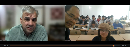 10月18日早上8点10分,在《国际工程项目管理》(英)课堂上,同学们再次迎来了线上和Hubbard教授面对面交流的机会。首先Hubbard教授介绍了美国工程行业的计量与计价行业特点,并和课程老师汪恒一起对中国和美国工程行业在该方面的异同进行了比较;随后,课堂进入问答环节,同学们积极提问,有趣的问题引起了教授的微笑和夸奖,Hubbard教授的细致回答也激起同学们的阵阵掌声。最后,在教授的鼓励和同学们的热烈掌声中,这次线上活动成功结束。