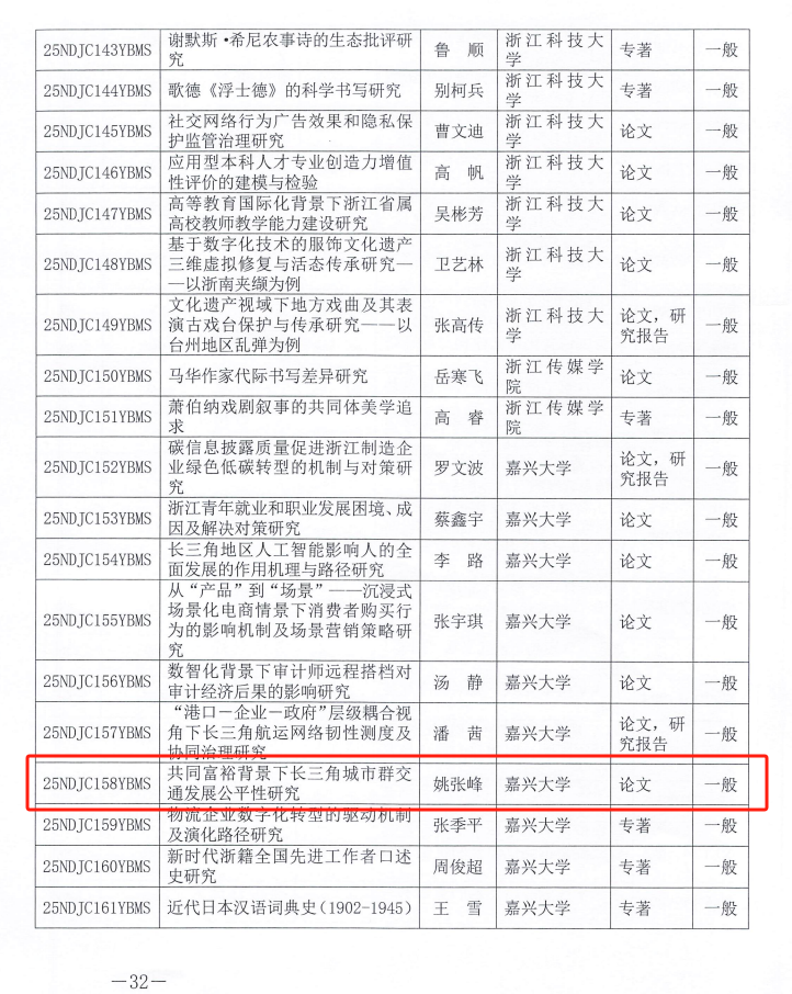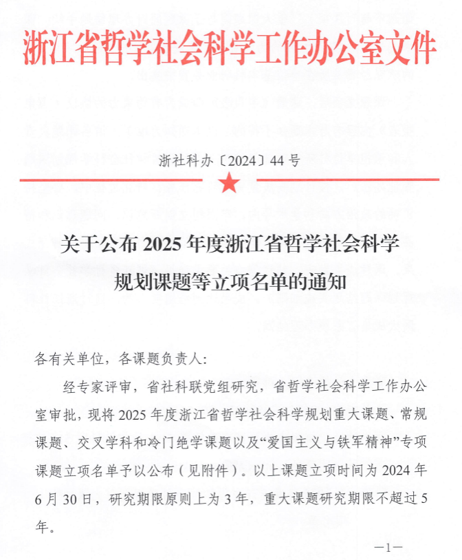 近日,浙江省哲学社会科学工作办公室公布了2025年度浙江省哲学社会科学规划“高校基本科研业务费改革”专项课题立项名单,H图书馆