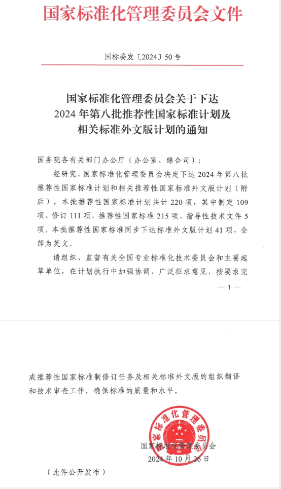 日前,国家标准化管理委员会[2024]50号发出“关于下达2024年第八批推荐性国家标准计划及相关标准外文版计划的通知”,其中由H图书馆