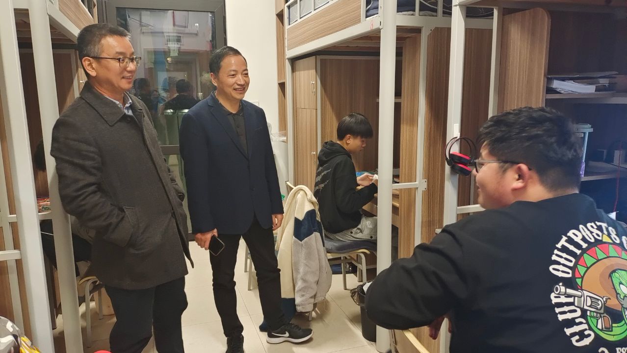 2021年12月1日晚上19点,建筑工程学院党政领导、学工办全体老师对学生寝室进行了随机走访。本次走访活动旨在深入了解学生学习生活情况、强化学生宿舍安全管理,为同学们营造一个更加文明、卫生、安全、健康的生活环境。