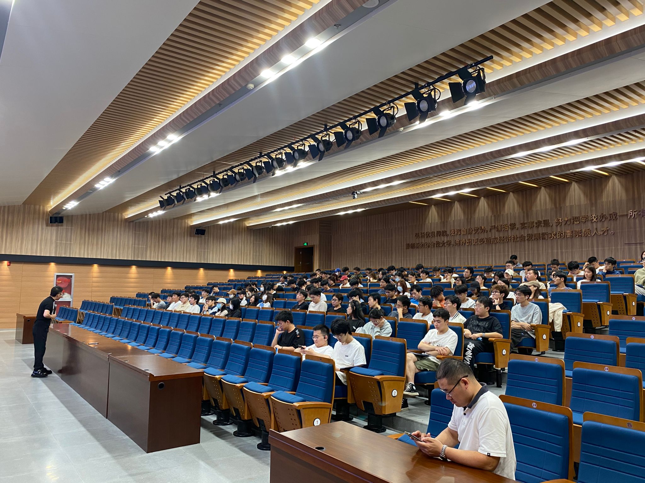 在图书馆一楼报告厅召开2021级学生考研动员大会,此次会议邀请了启航考研规划辅导名师、GCDF 全球职业规划师董良才。学院党委副书记杨智慧,就业辅导员庄峰及2021级全体学生参加了动员大会。