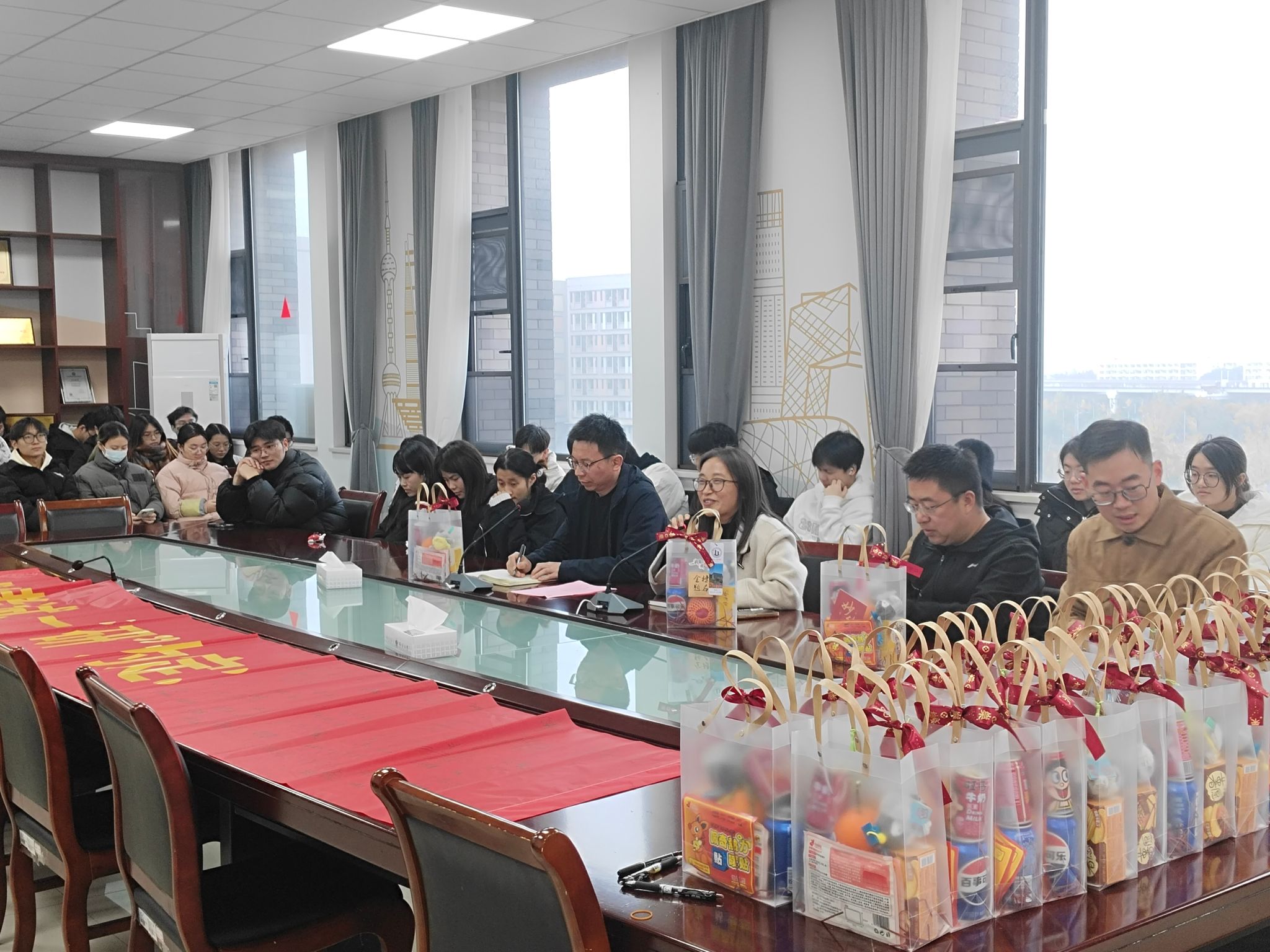 随后,各位老师为同学们分发了精心准备的慰问礼包,一战“橙”硕的脐橙、百事可“乐”的可乐、“苹”稳上岸的苹果、如你所“愿”的薯愿薯片,以及师生共同书写的考研祝福书签。礼包承载着学院对考研学子深深的祝福,祝福大家都能金榜题名,成功上岸。