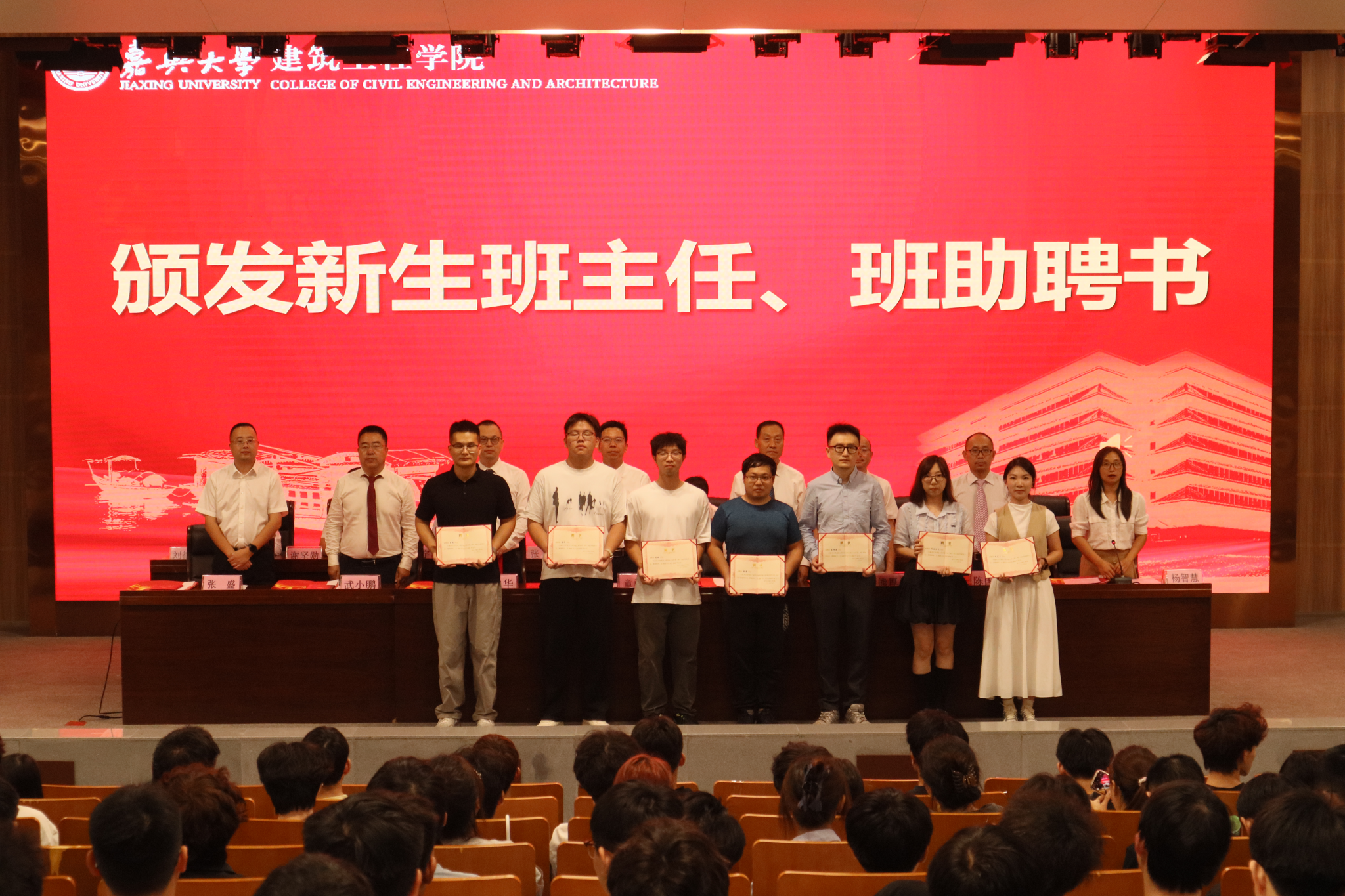 随着全体人员肃立,激昂的国歌奏响,开学典礼在庄严的氛围中拉开帷幕。学院领导为新生班主任和班助颁发聘书,未来他们将从学业、生活、思想等方面,助力新生适应校园、融入集体。