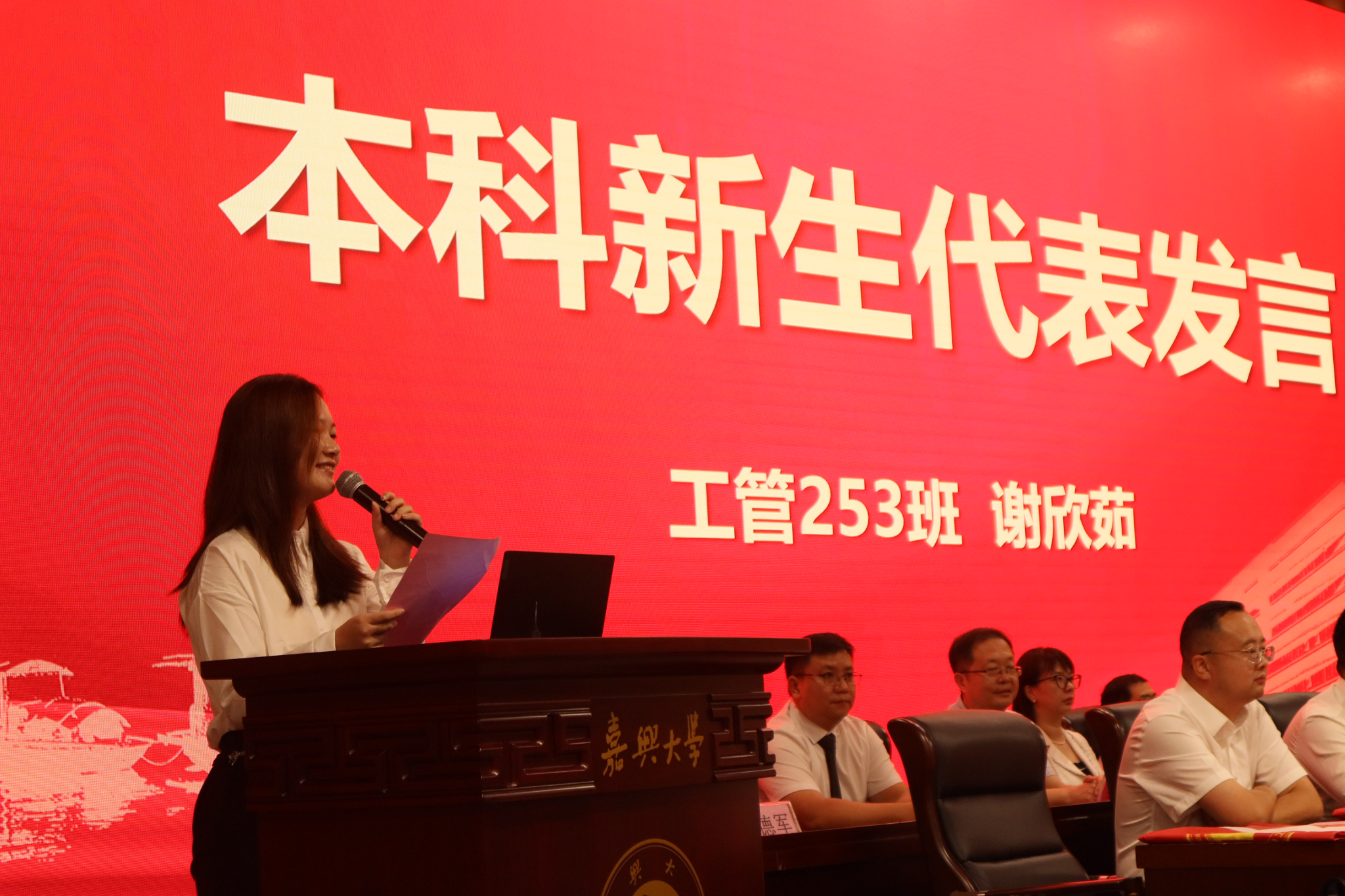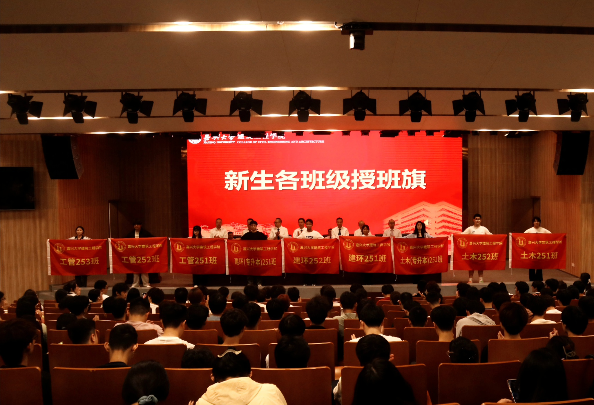 在激动人心的授班旗仪式上,学院领导将一面面设计精美的班旗郑重地交到各新生班级代表手中。这不仅是一面旗帜,更是一种责任与使命的传递。