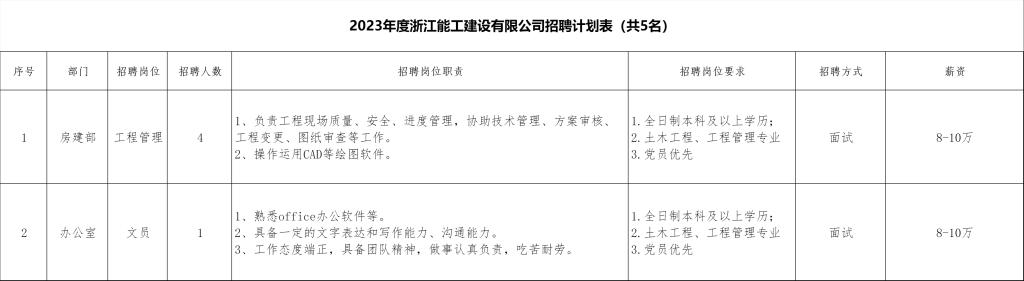 浙江能工建设有限公司招聘信息